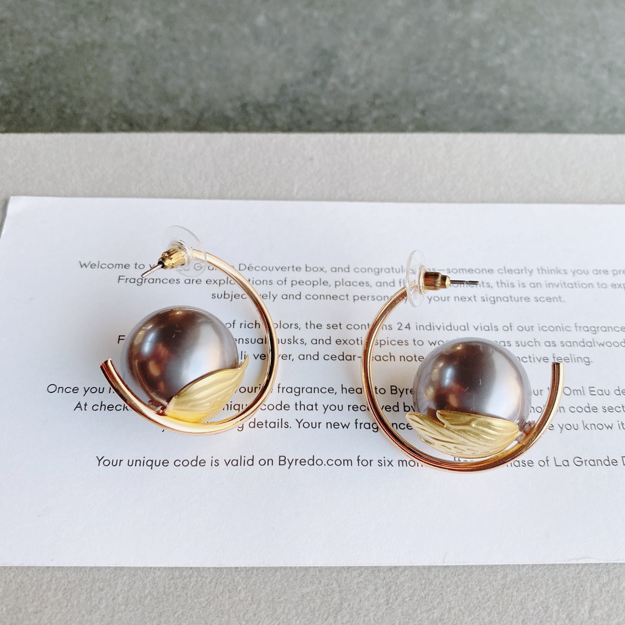 【gray Pearl fruit 】circle pierce or earcuff グレーパールの実 パール サークル ピアス or イヤーカフ