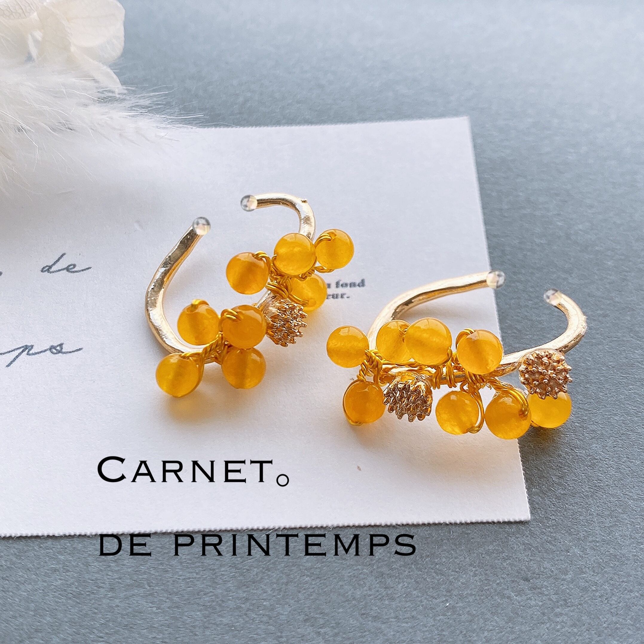 mimosa イエローカルセドニー 天然石 ゴールド イヤーカフ