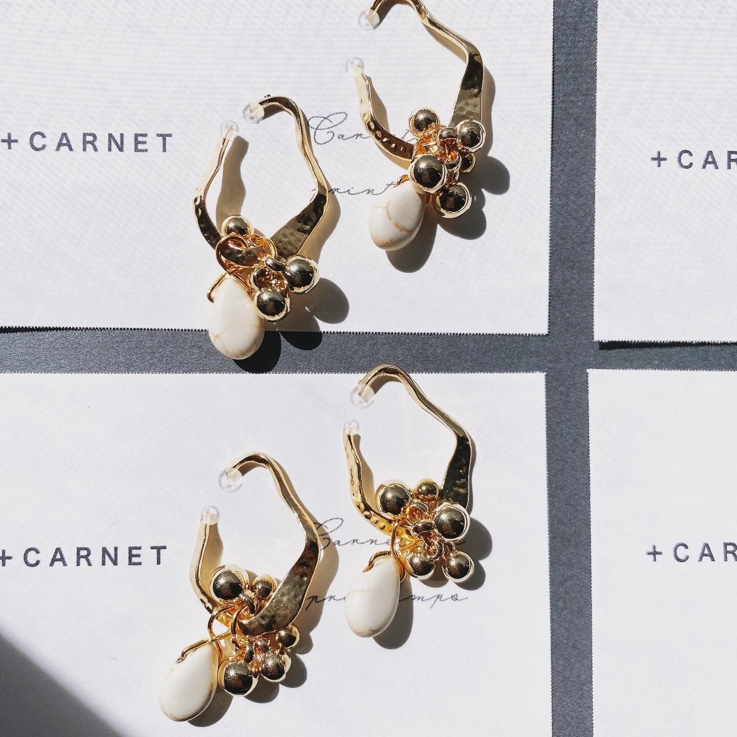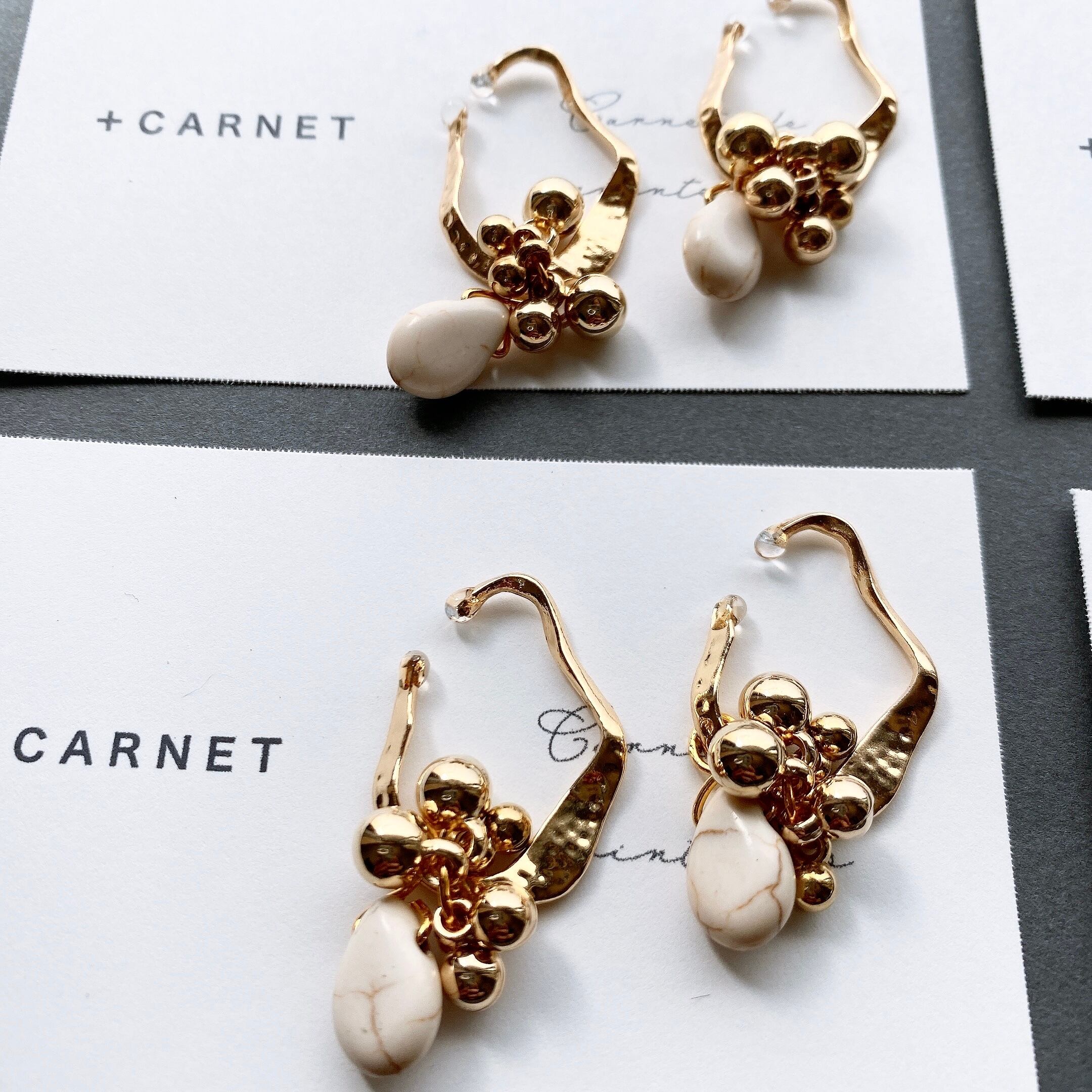 Howlite 天然石 ハウライト ゴールド ボール イヤーカフ