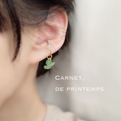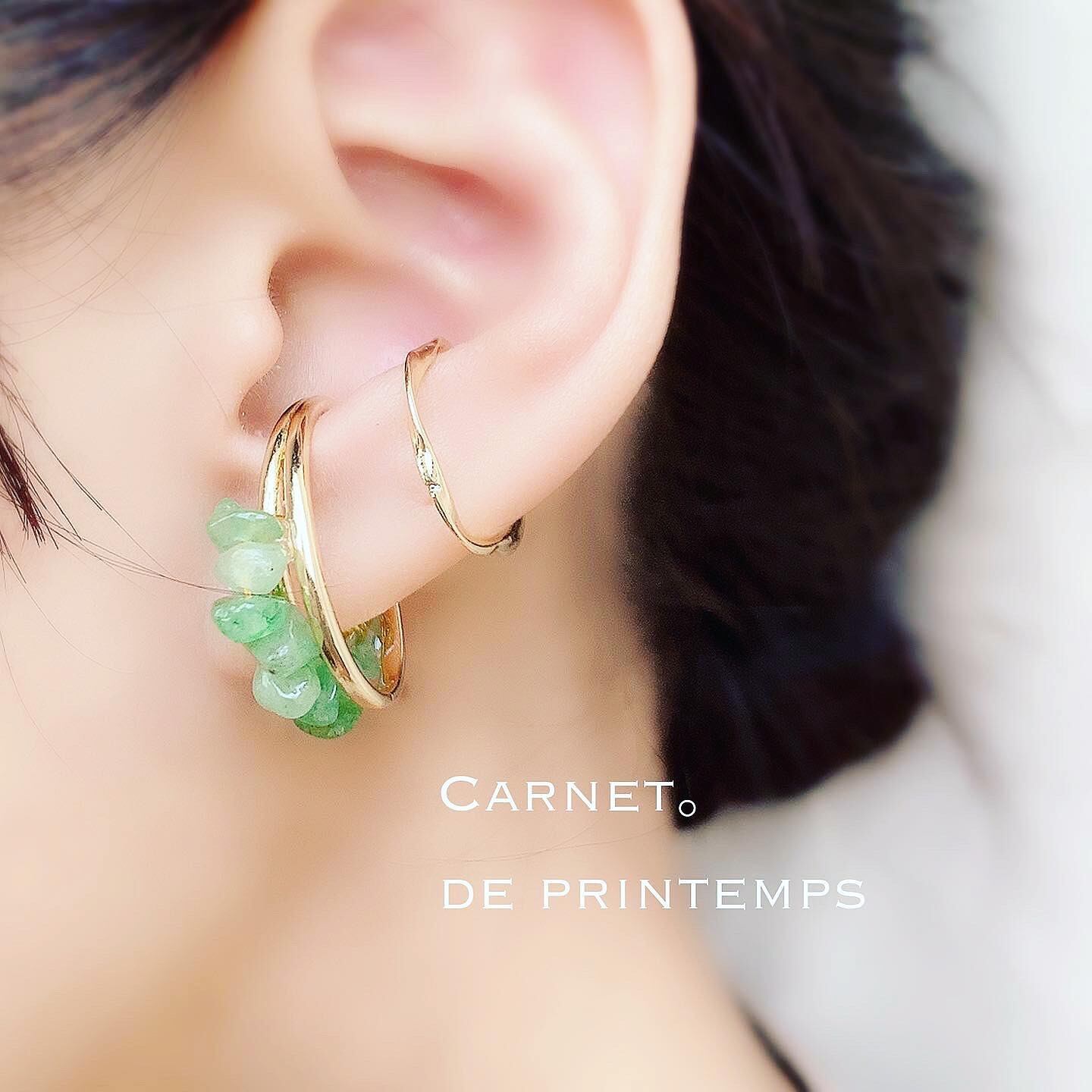 trend グリーンアベンチュリン ゴールド アシンメトリー イヤーカフ チャーム付き