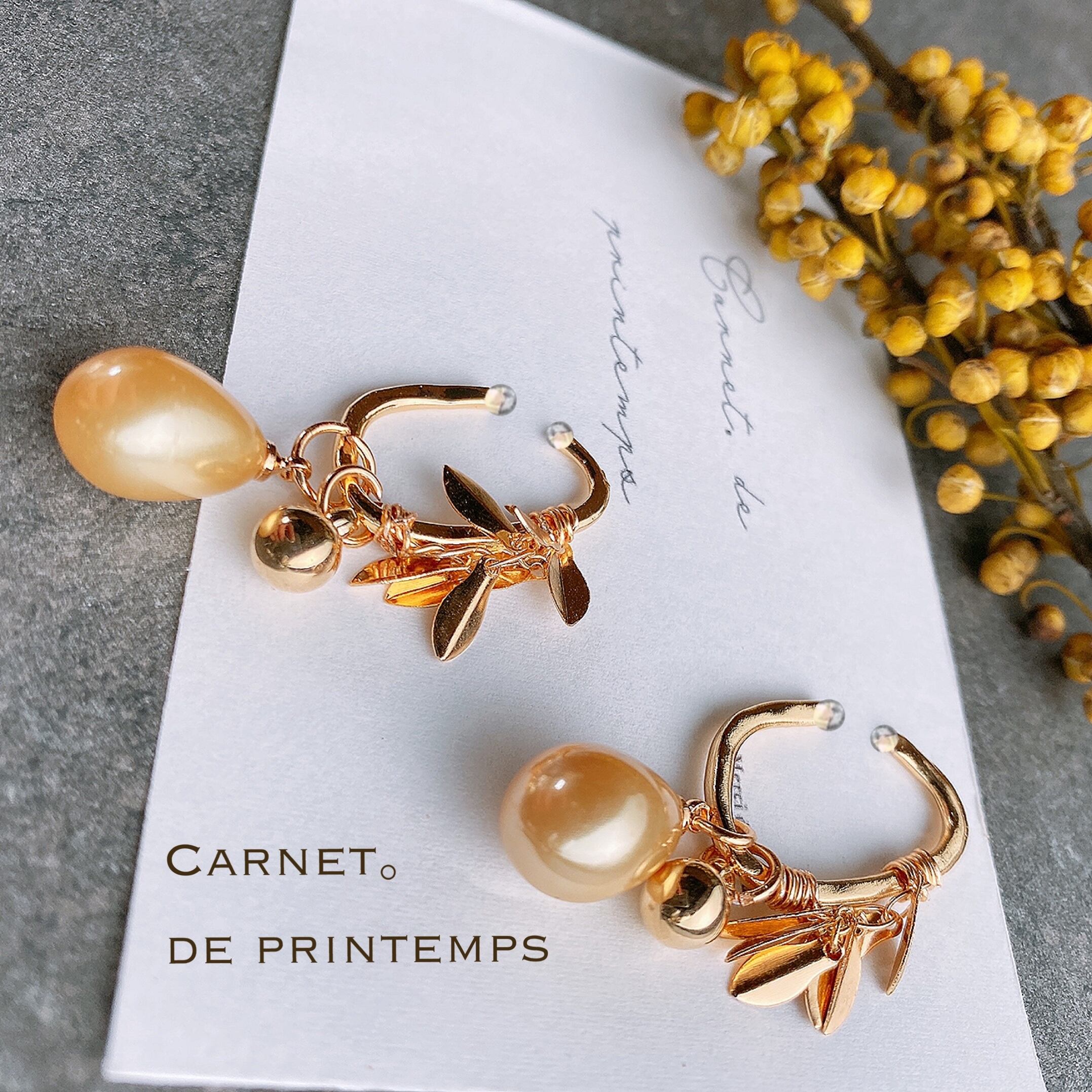 Oliveleaf ゴールド パール ゴールドリーフイヤーカフ