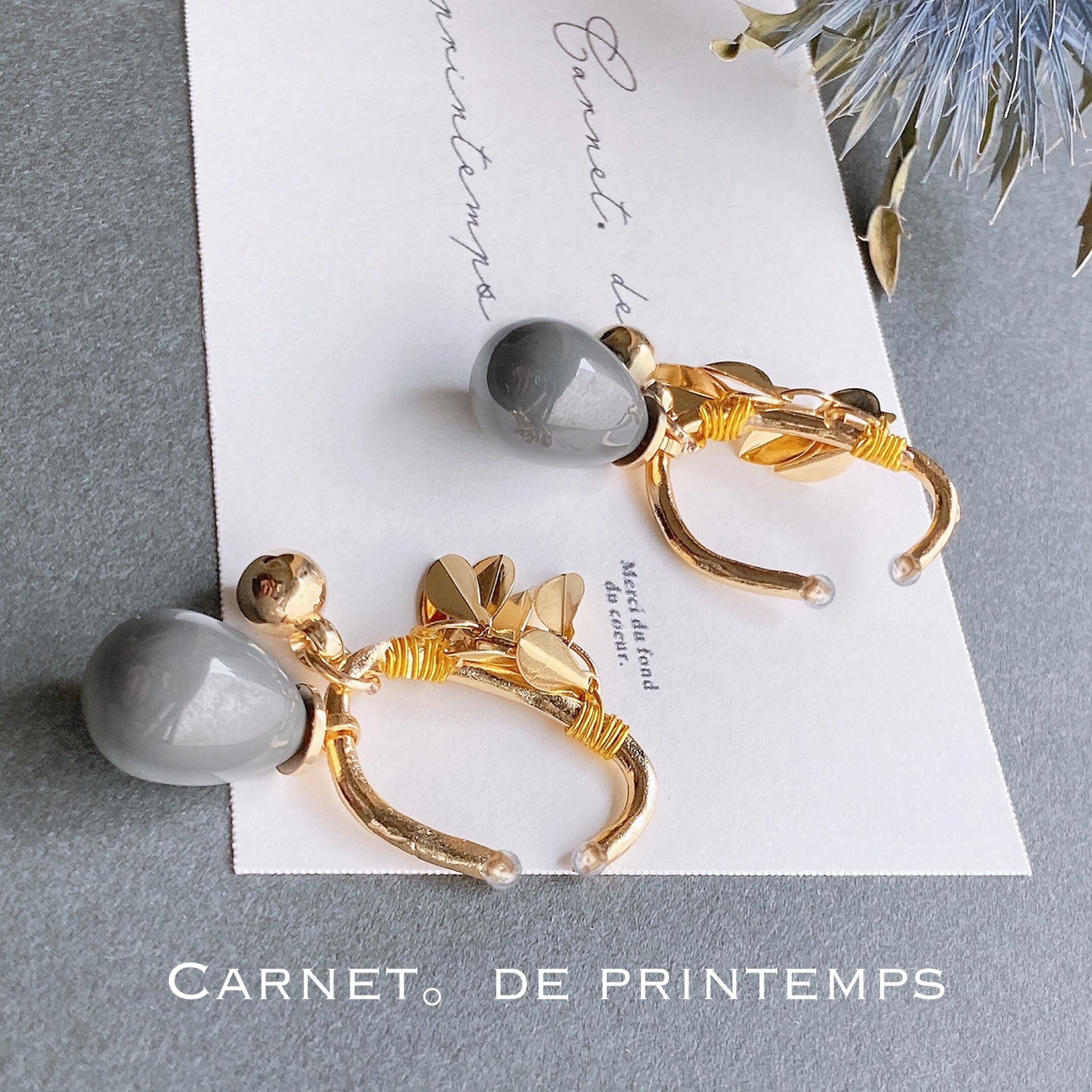 Oliveleaf グレー パール ゴールド リーフ イヤーカフ