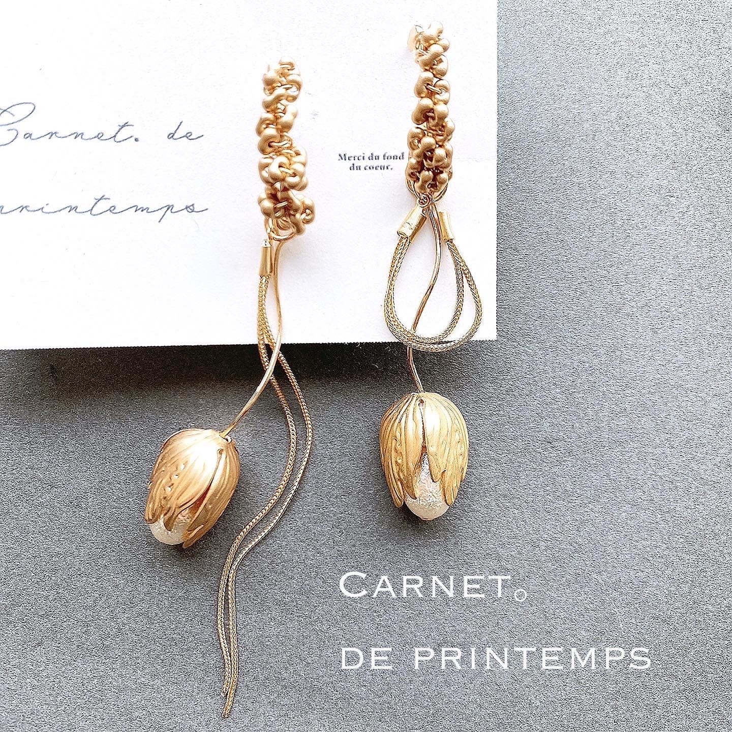 lamariée ゴールド フラワー パール チェーン アシメ イヤーカフ