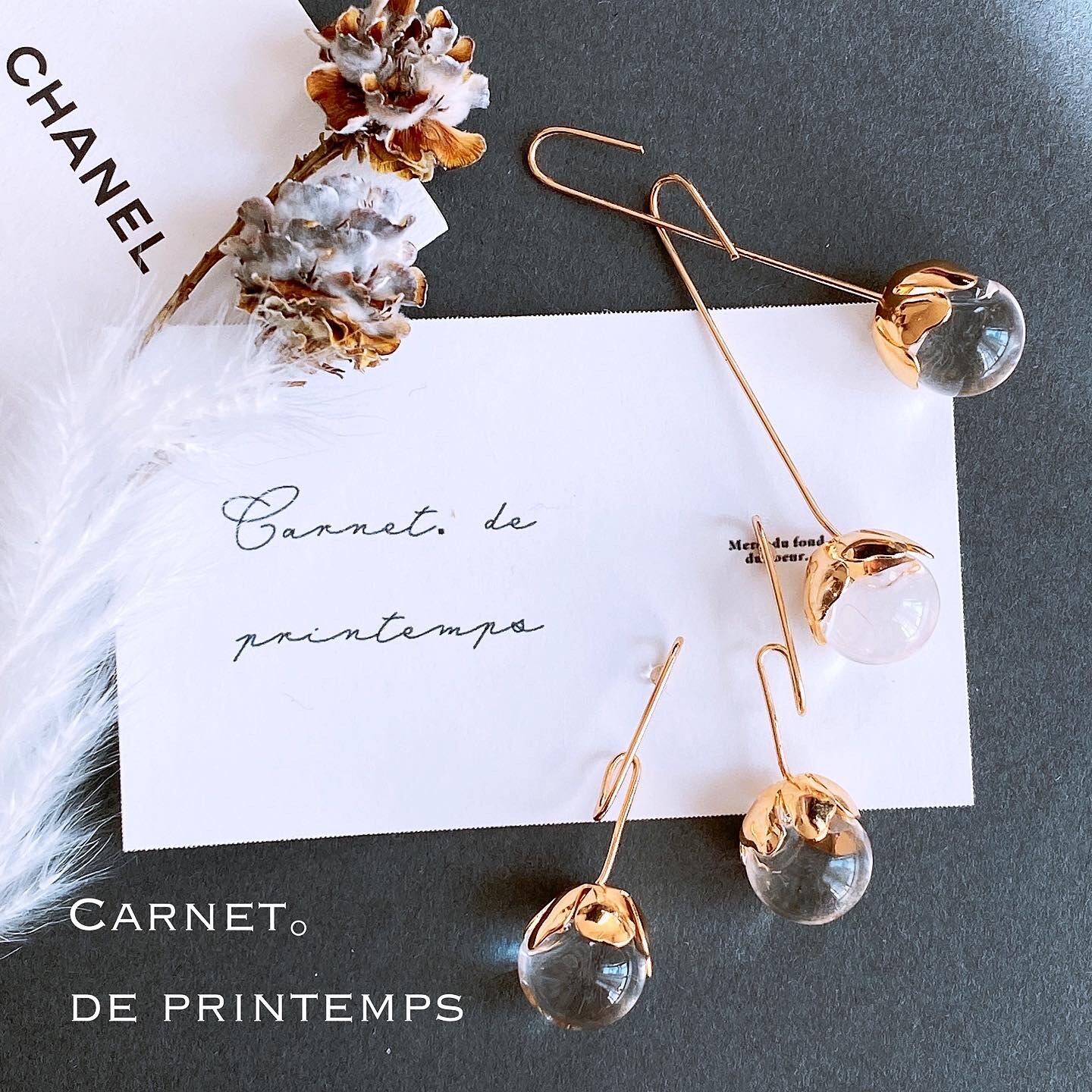 Hypericum 透明 クリア ゴールド イヤーカフ or ピアス