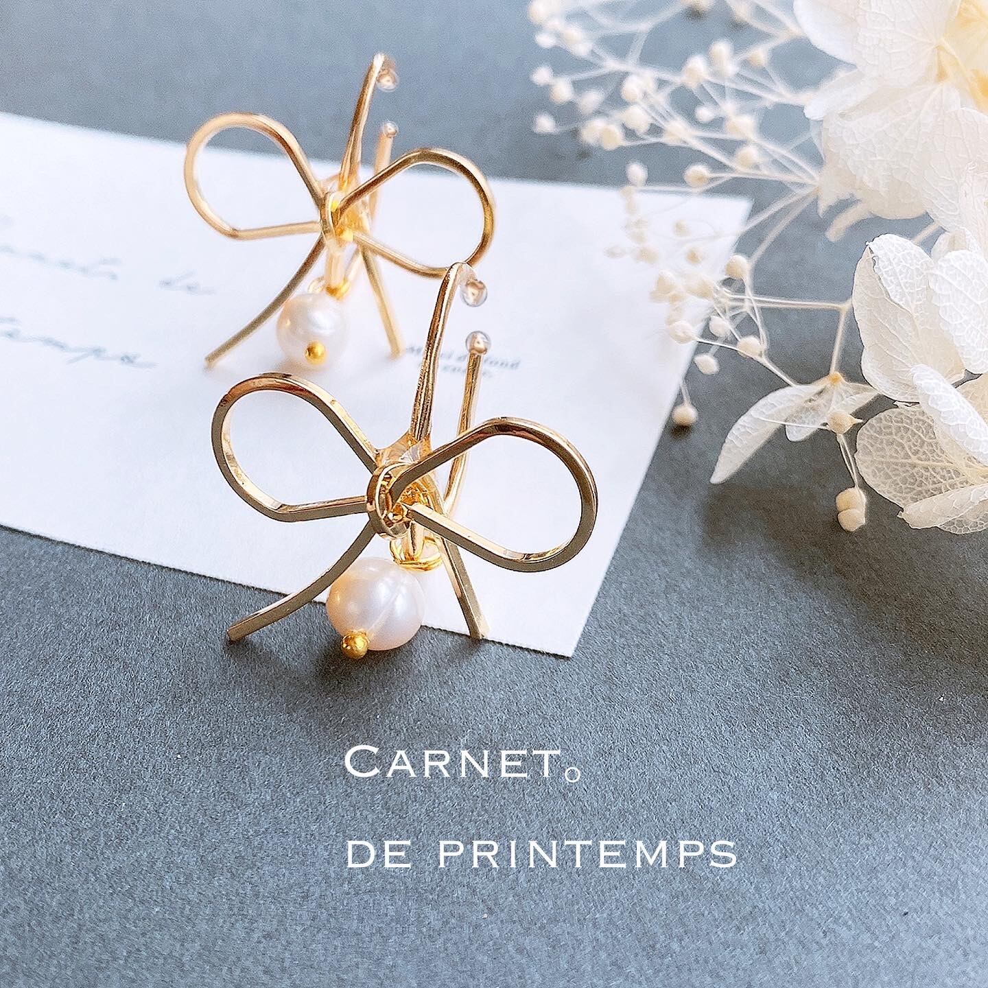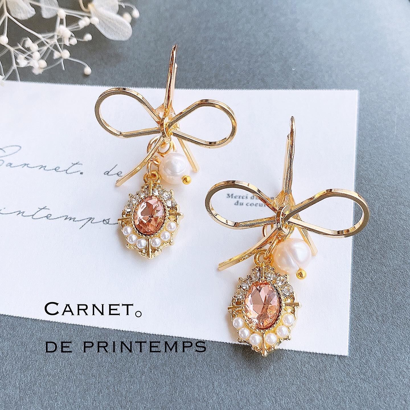 mignon淡水パール リボン ビジュ 3way ゴールド イヤーカフ