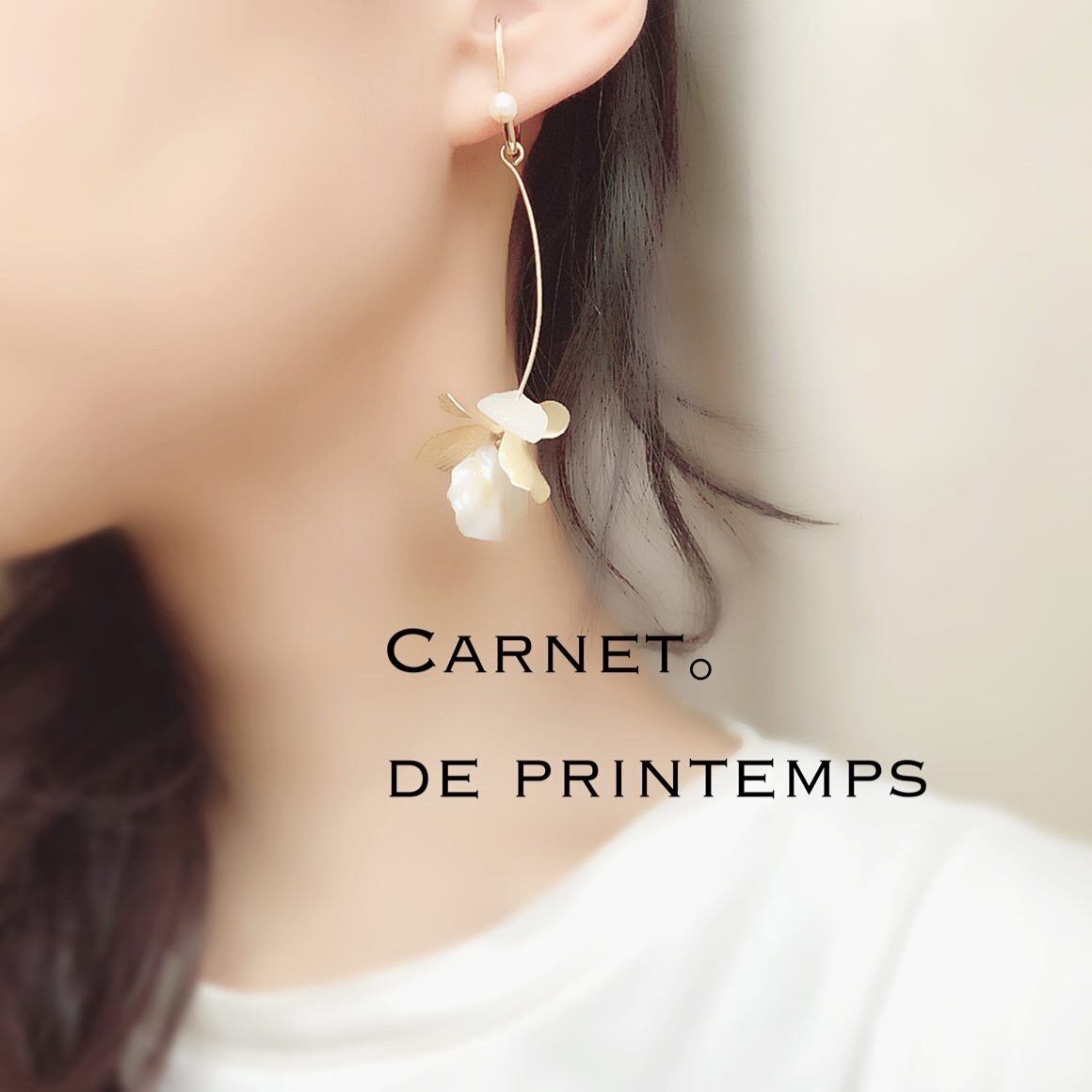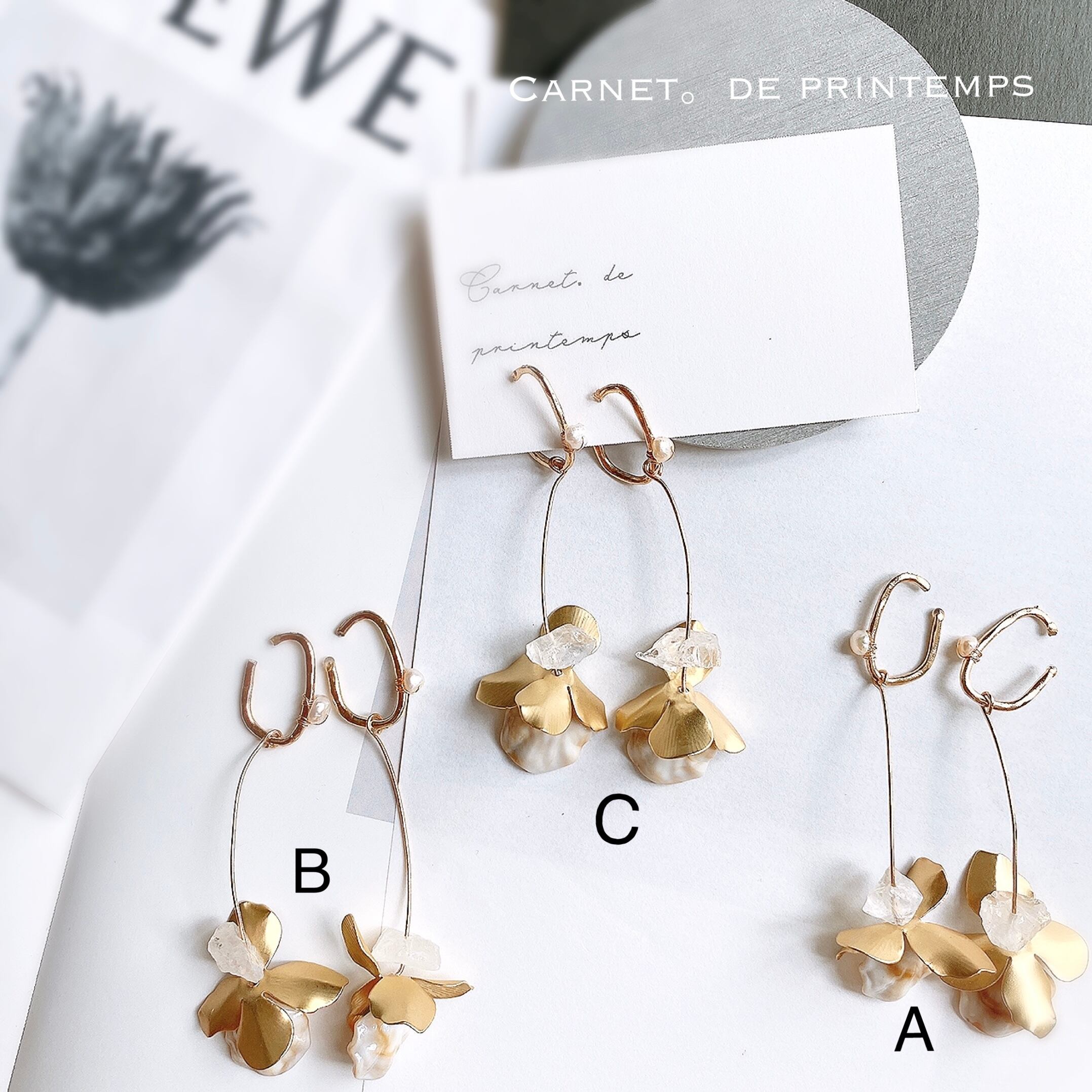 wahine male クリスタルクォーツ 淡水パール ゴールド フラワー イヤーカフ