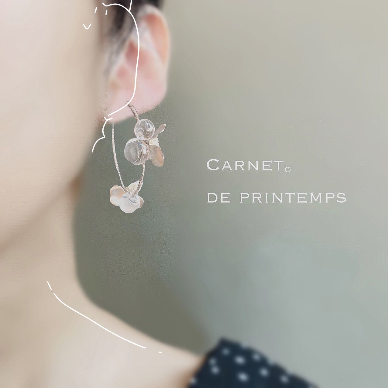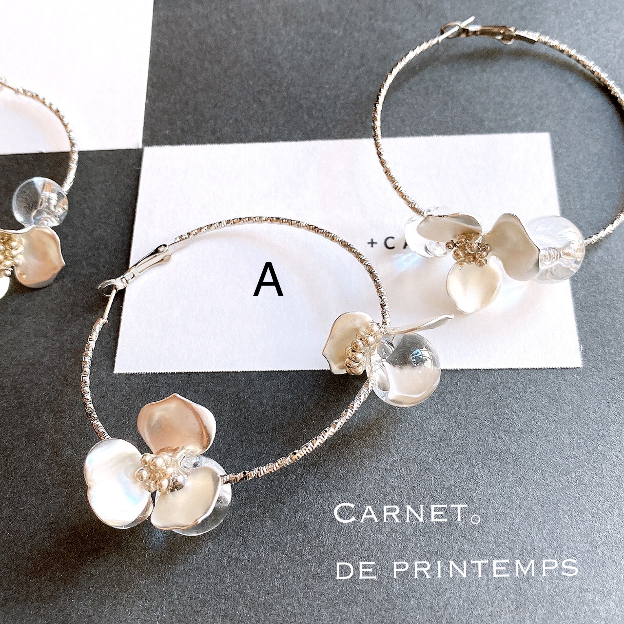 Princess silverflower clearball シルバー フラワー クリア フープ ピアス