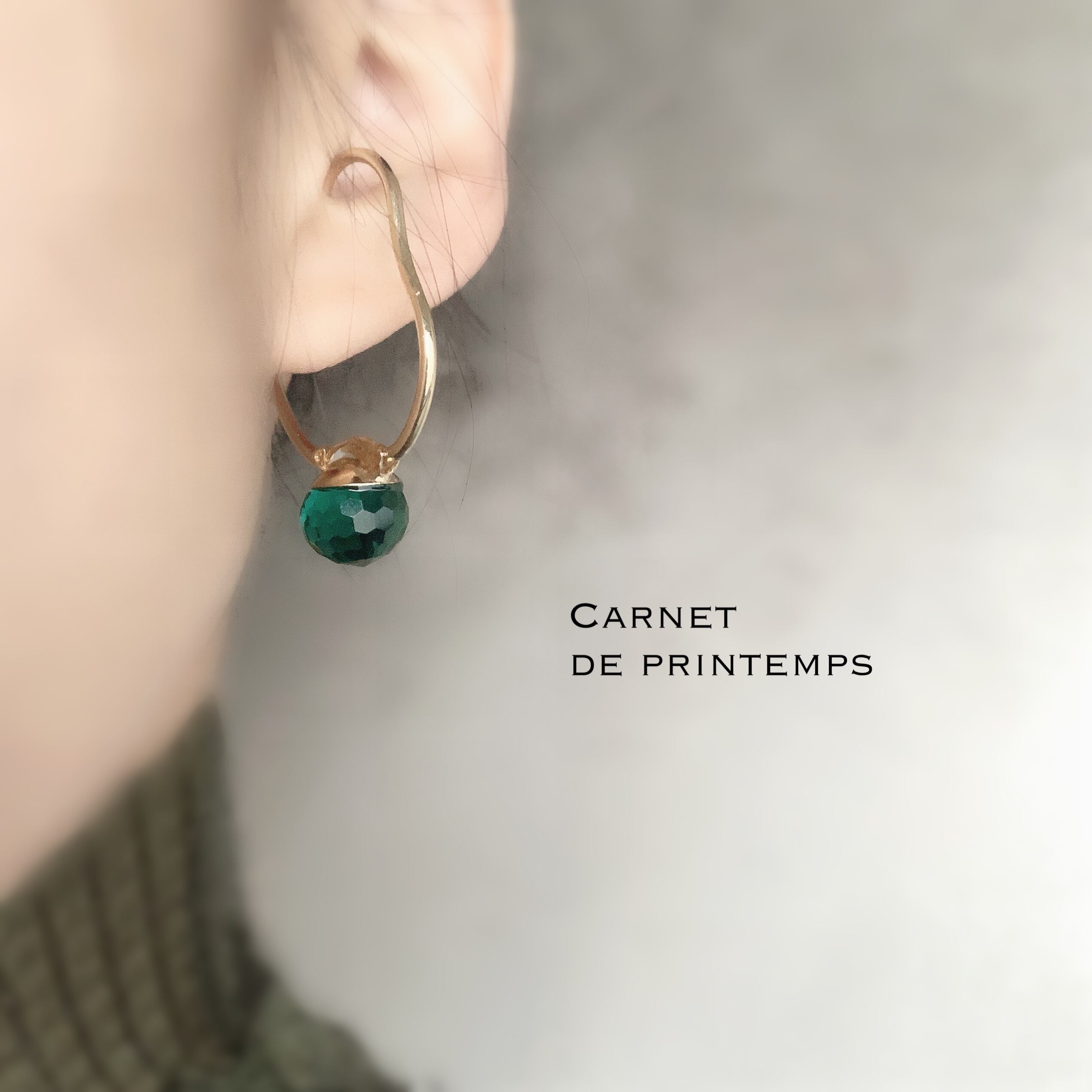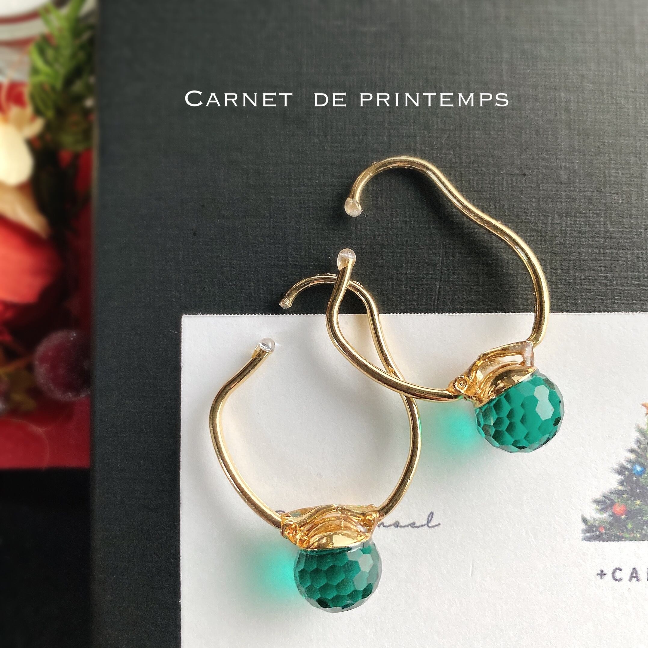 marge green cutball artificial crystal ゴールド イヤーカフor ピアス