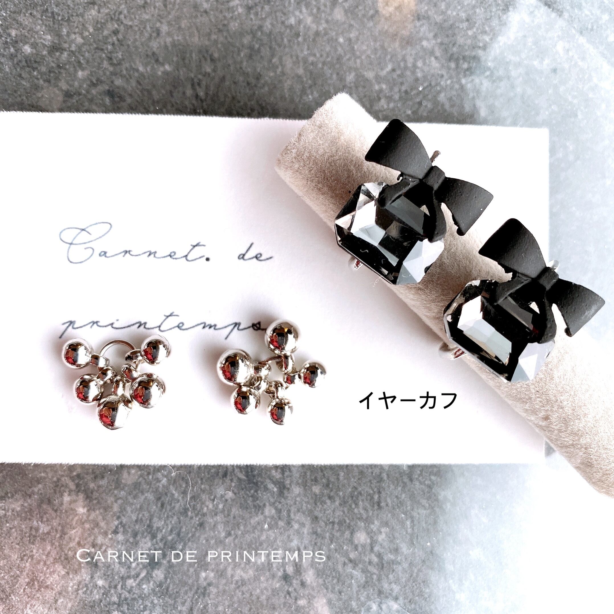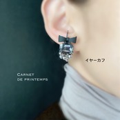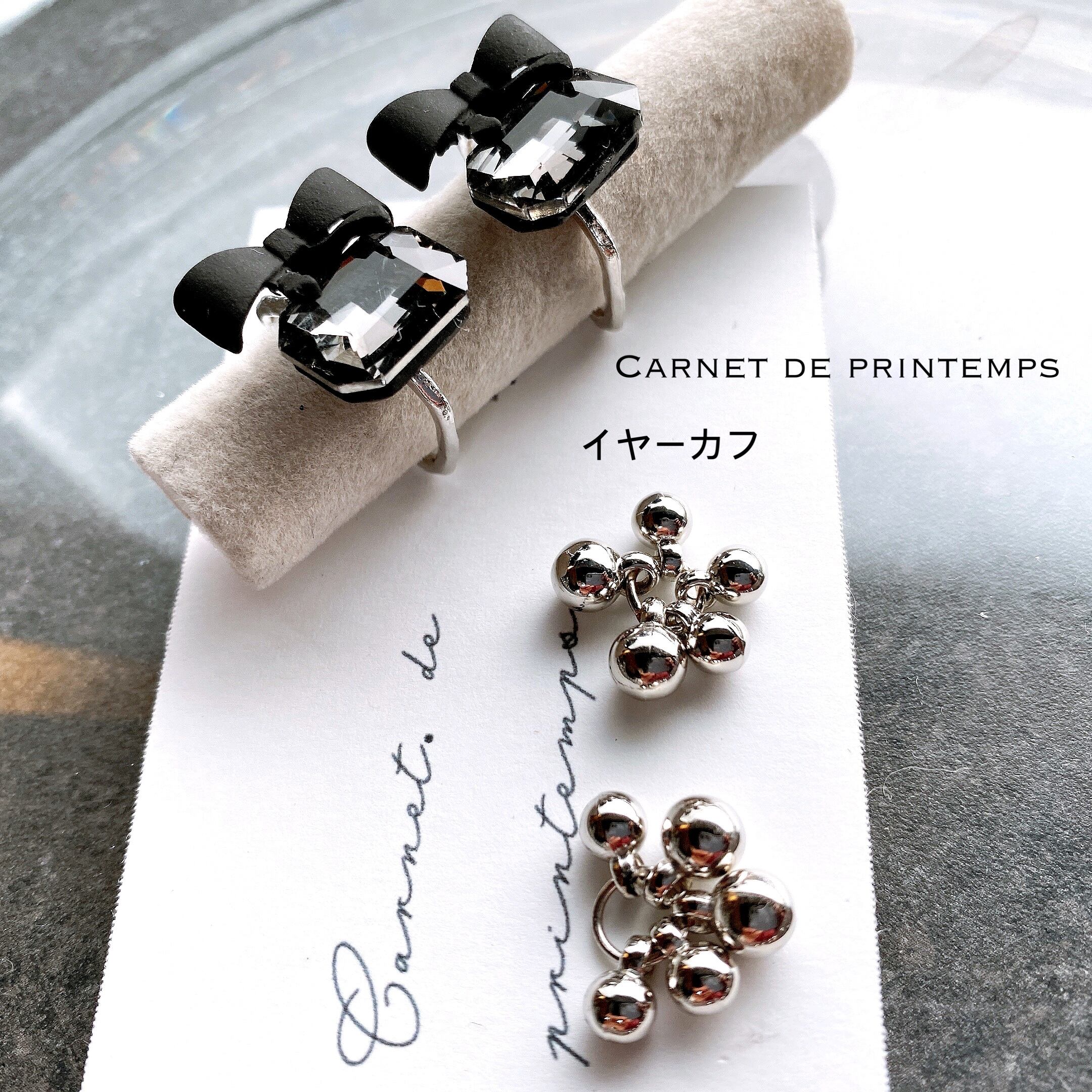 Petit diable ブラックビジュー ブラックリボン シルバー イヤーカフ or ピアス
