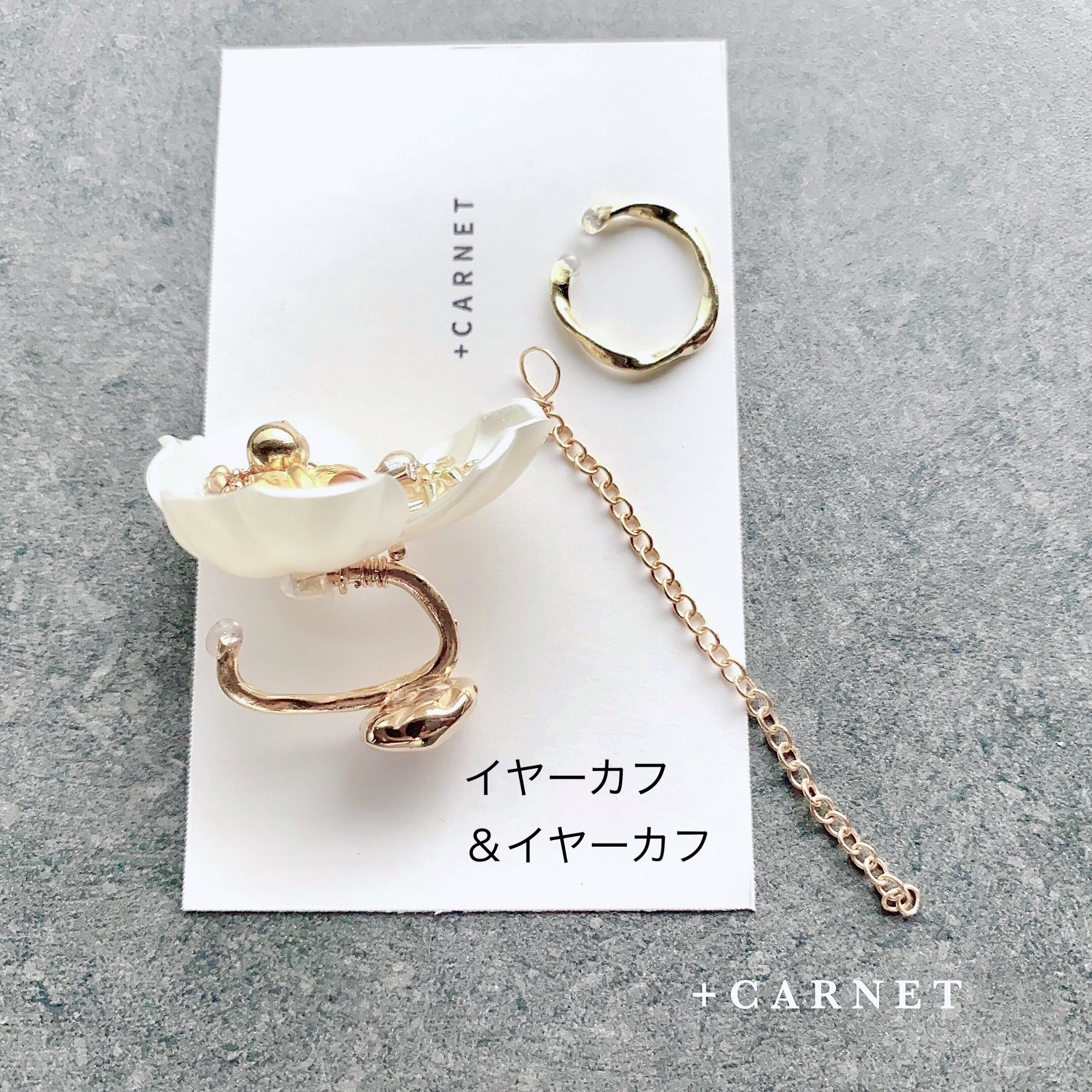 Ethical フラワー デコ ゴールド アシンメトリー イヤーカフor ピアス