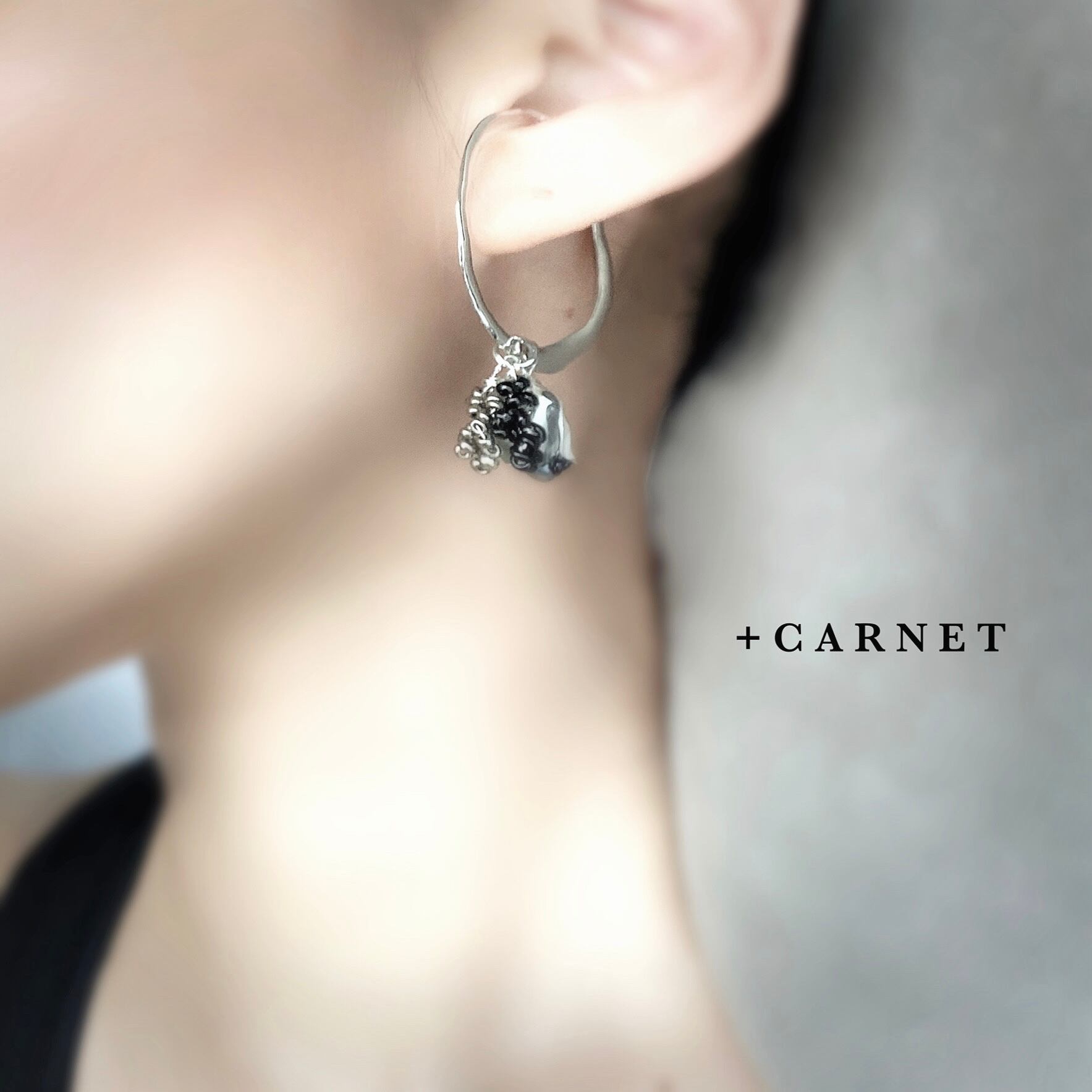 Black Pearl Europe beads ヨーロッパ製ビーズ シルバーカラー イヤーカフ orピアス or イヤリング