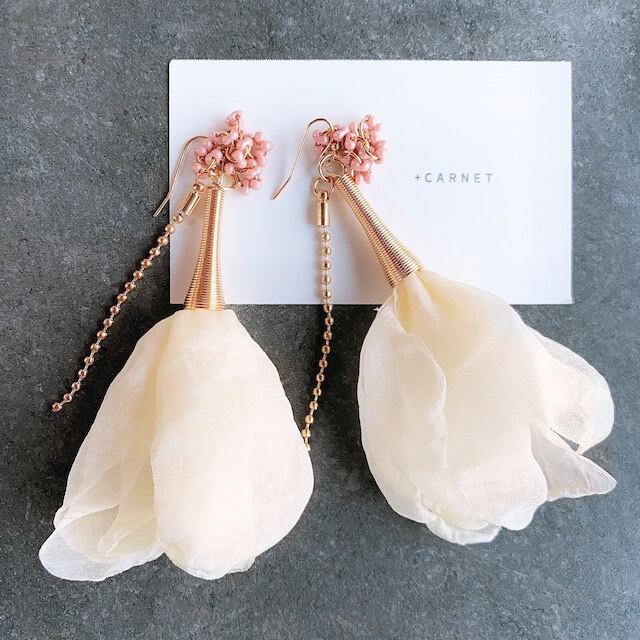 ballet Europe parts chiffon ヨーロッパ製ビーズとシフォンチャーム 4way ピアス or イヤリング or イヤーカフ