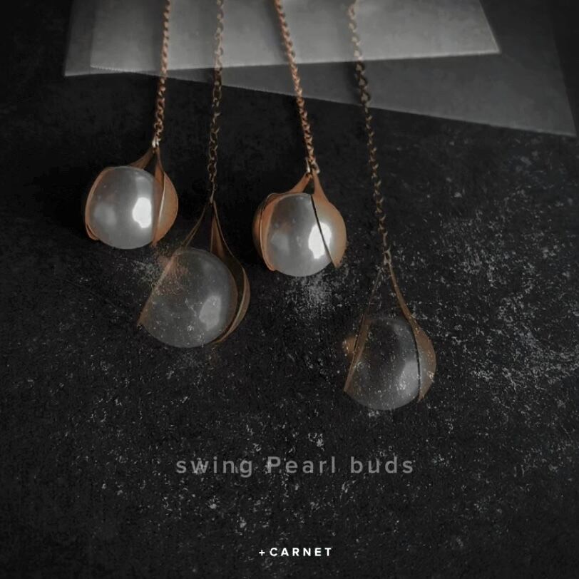 swing Pearl buds gold chain pierce or earring or earcuff パール 蕾 チェーン ピアス or イヤリング or イヤーカフ