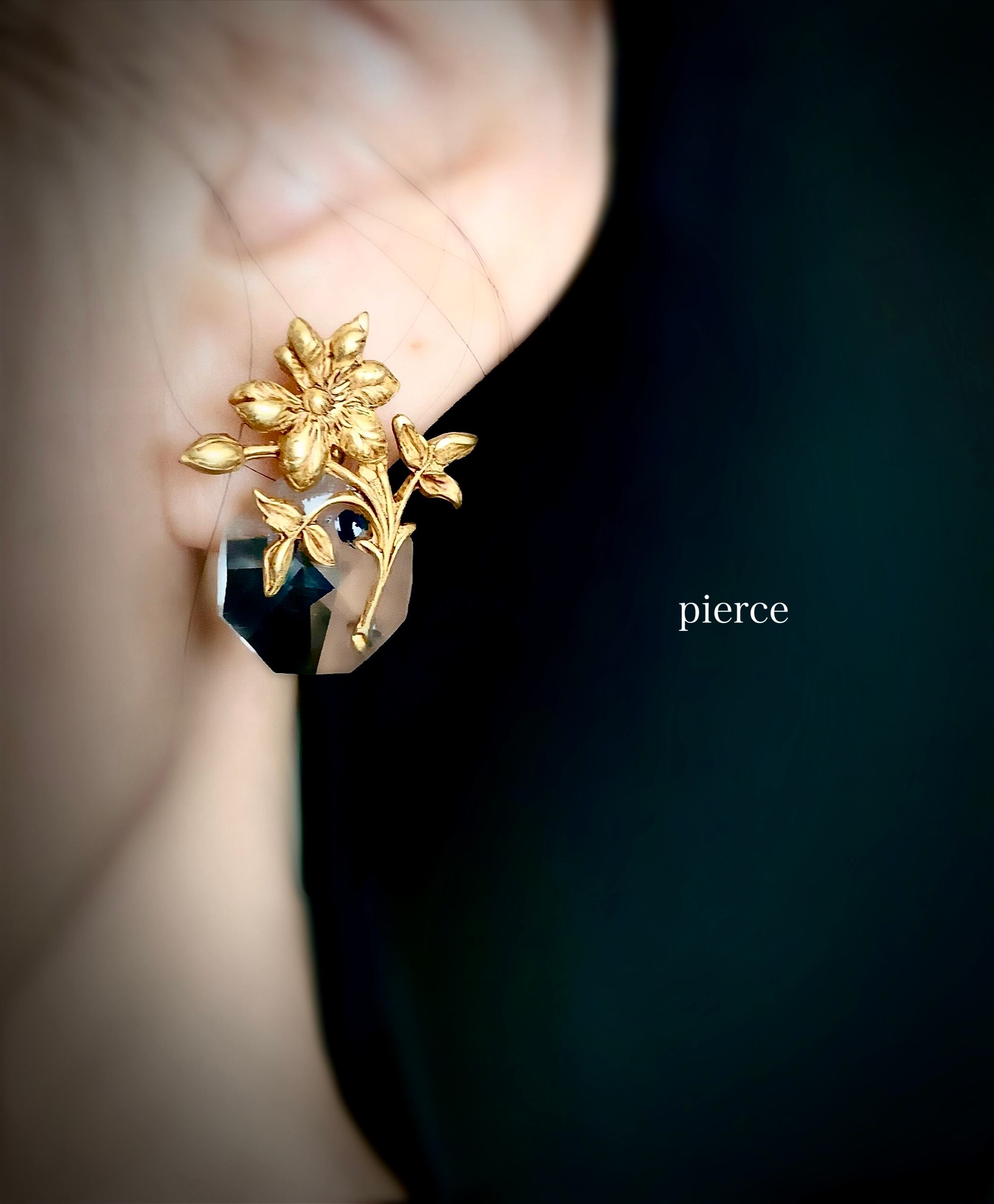 ☞イヤリング金具(蝶バネ式)耳後ろシリコンキャップ付きます。
