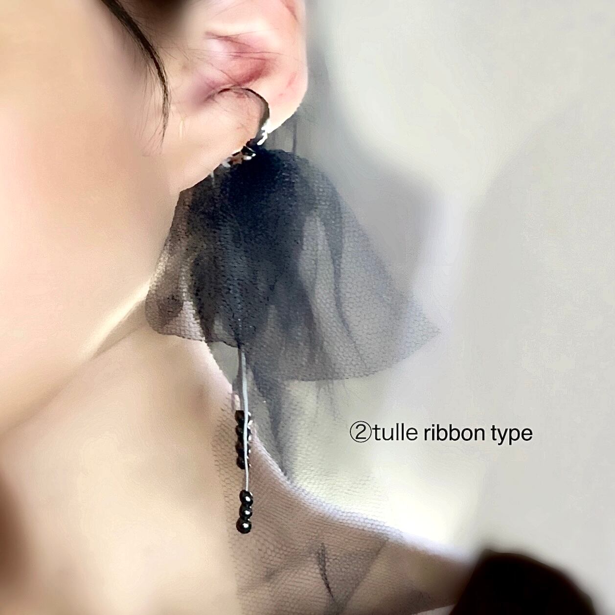 BLACK tulle & hematite earaccessory
